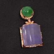 老坑冰紫配冰绿小旦面 平安无事牌翡翠吊坠
