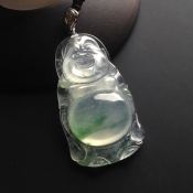 冰种飘花站佛 翡翠吊坠 裸石尺寸36-21-6.5毫米