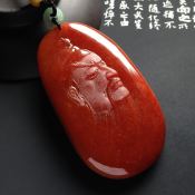 巧雕红翡关公翡翠吊坠 尺寸75-42-13毫米