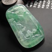 冰种满绿 高山流水翡翠吊坠 尺寸: 52-36-7mm