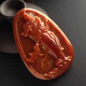 巧雕红翡百财吊坠 尺寸53-34-18毫米