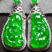 一对的价格高冰阳绿牡丹花翡翠吊坠 尺寸36.3*17.2*7.8
