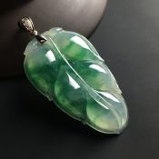 冰种飘绿叶子 翡翠挂件 尺寸44-27-5.5毫米