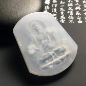 老坑料冰种满底色 虚空藏菩萨翡翠吊坠
