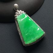 冰种荧光翡翠吊坠 18K金扣 尺寸49-32-5毫米
