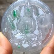 老坑冰种飘绿 普贤菩萨 翡翠吊坠 完美冰透色辣