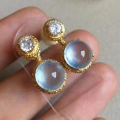高冰淡紫色耳钉 冰透清凉起荧光 尺寸9.2-4.6毫米