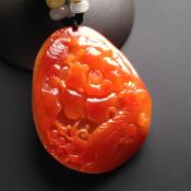 巧雕红翡花开富贵 翡翠吊坠 尺寸55-42-13毫米