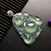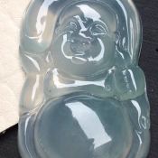 冰种晴底布袋佛 翡翠吊坠 尺寸: 35-32-8mm