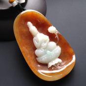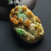 巧雕黄加绿鸟语花香 翡翠吊坠 尺寸:54-35-12毫米