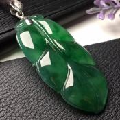 好漂亮的冰绿树叶 翡翠挂件 裸石尺寸42.8*22.0*4.7mm
