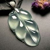 冰飘花叶子 翡翠挂件 尺寸:38-23-6mm