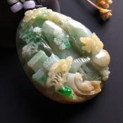 巧雕黄加绿会友翡翠吊坠 尺寸61-45-11毫米