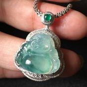 阳绿招财佛 翡翠挂件 尺寸23.2*26.3*4.6