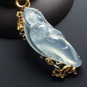 高冰种观音 翡翠挂件 整体尺寸:60-18.5-9.8