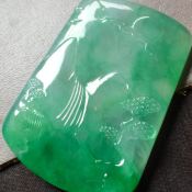 高冰绿花山水翡翠吊坠 完美冰透厚庄大件 尺寸53.8*39.5*5.7