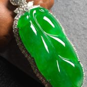 冰阳绿叶子 翡翠挂件 裸石尺寸40*18.3*4