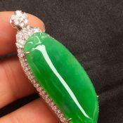 好漂亮的冰绿树叶 翡翠挂件 裸石尺寸42.8*22.0*4.7mm