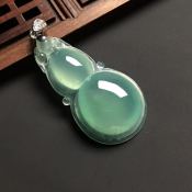 冰种晴水 葫芦翡翠吊坠 白金扣 尺寸38-20-7.5毫米