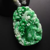 巧雕带色鸟语花香 翡翠吊坠 尺寸57-40-10毫米