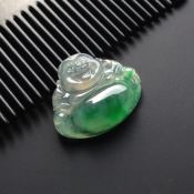 冰糯种满绿佛公 翡翠吊坠 尺寸18*16.6*3.8
