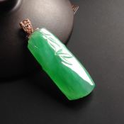 冰玻种阳绿 竹节翡翠挂件 尺寸37-14-65毫米