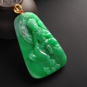 糯冰种阳绿渡母翡翠吊坠 18K金扣 尺寸52-32-7.5毫米