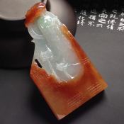 巧雕黄加绿喜上眉梢 翡翠吊坠 尺寸55-42-10毫米