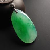 阳绿花开富贵翡翠吊坠 色阳饱满 尺寸33*7.8mm重量12.13g