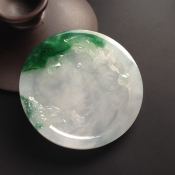 冰糯种飘绿山水牌翡翠挂件 完美无纹裂 尺寸61*41.2*6.2