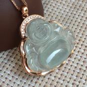 高冰玫瑰金钻佛公 佛翡翠吊坠