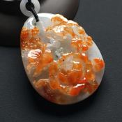 巧雕红翡蝶恋花 翡翠吊坠 尺寸:59-44-10毫米