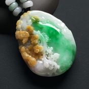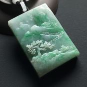 巧雕带色大好河山 翡翠吊坠 尺寸:55-35-12毫米