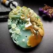巧雕双彩喜上眉梢翡翠吊坠 尺寸56-45-11毫米