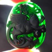 冰种黑翠麒麟挂件