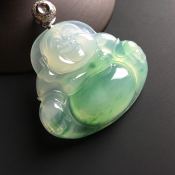 冰种飘绿佛公 翡翠吊坠 尺寸36-40-9毫米