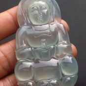 老坑料冰糯种满绿 释迦牟尼翡翠吊坠