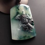 糯冰种飘花关公 翡翠吊坠 尺寸63-38-8毫米