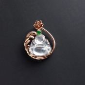 冰种晴水翡翠吊坠 翡翠母子扣吊坠 大小:29.9*5mm
