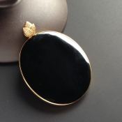 墨翠无事牌翡翠挂件 18K金镶嵌 连金尺寸42-34-4毫米