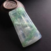 冰种飘花淡泊人生 翡翠挂件 尺寸58-32-7mm