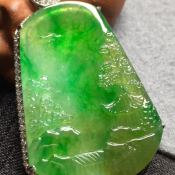 冰黄加绿山水 翡翠吊坠 裸石尺寸33.5*25.5*5