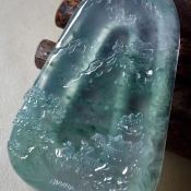 高冰飘绿花山水 翡翠吊坠 尺寸62.6*42.2*7.5