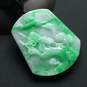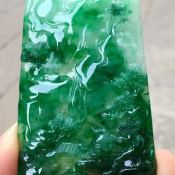 老坑料冰种满绿 山水牌翡翠吊坠