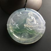 冰种晴绿普渡众生 翡翠吊坠 尺寸54.8-7毫米