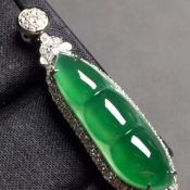 冰种满绿福豆 完美 翡翠挂件 尺寸:43*12.8-10.2