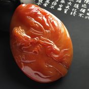 巧雕红翡忠义关公翡翠吊坠 尺寸70-50-13毫米