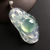 冰种飘花逍遥佛 翡翠吊坠 尺寸43-23-8毫米