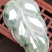 冰飘花叶子 翡翠挂件 尺寸:54.8*32.2*4.7