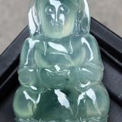 冰种飘花佛公 翡翠吊坠 尺寸35-33-7.5毫米